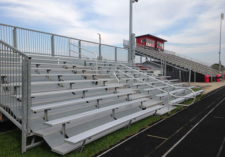 Your spectators will be safe when you rent from Always Available Seating™. Our rental bleachers meet IBC code requirements. The risers are enclosed, the ends and back have guardrails, the center aisle has a handrail and the stairs are extra wide.